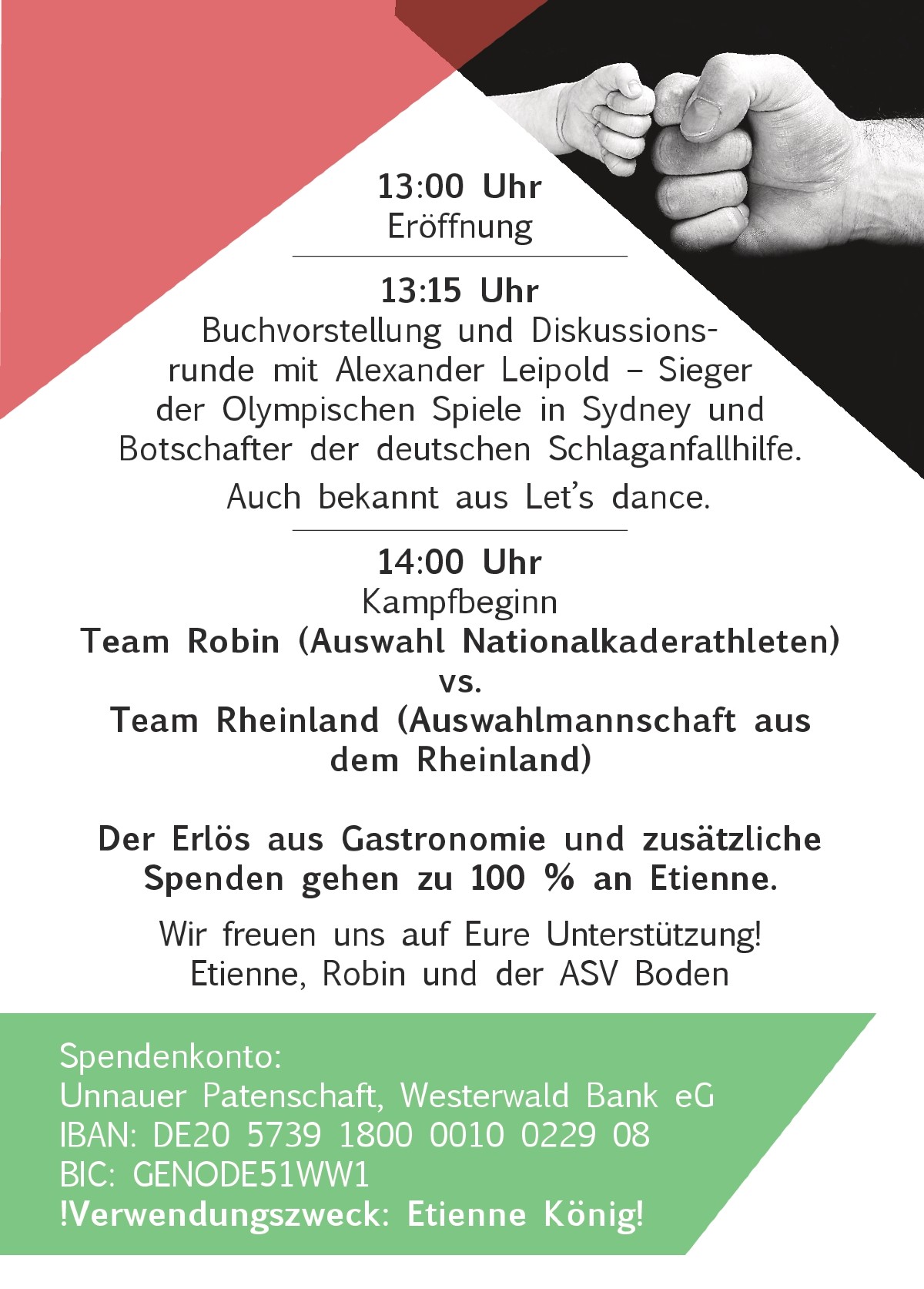 Bitte beachtet dass der Kampf am SONNTAG um 15:00 Uhr stattfindet.